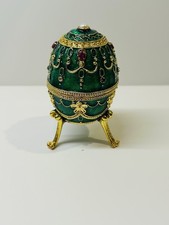 Faberge Egg Replica Green Trinket Music Box Gold Accents Vintage Works Great