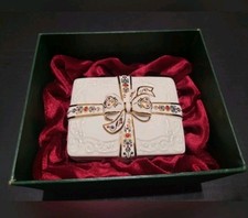 Vintage Lenox Musical Gift Box Porcelain Trinket Box with Bow & Gold Trim
