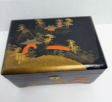 VTG Asian Wood Lacquer Jewelry Music Box Oriental Trinket Keepsake Japan - W