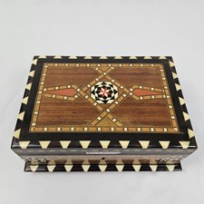 Vtg Spanish Marquetry Music Box Wooden Mosaic Jewelry Box