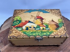Vintage Netherlands Folk Art Wood Trinket Music Box Hand Painted Pyrography