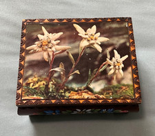 VINTAGE HANDPAINTED WOODEN MUSIC BOX TRINKET BOX FLOWERS MADE IN AUSTRIA