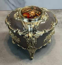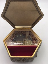 Vintage cameo incolay metal footed music jewelry box felted Nocturne Westland Co