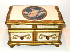 Vintage Florentine Style Wood Jewelry Music Box 4 Drawer