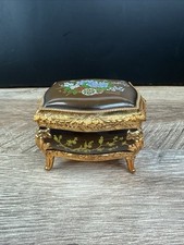 Vintage Italian Florentine Gold Gilt Cameo Footed Music Box Jewelry Trinket Box
