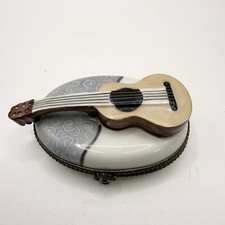 Peint Main Limoges France Chamart Guitar Music Trinket Box Vintage/Antique Video