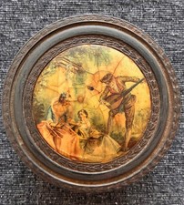 Carved Wood Box Music Trinket Jewelry With Mirror Vintage Antique Painted Scene