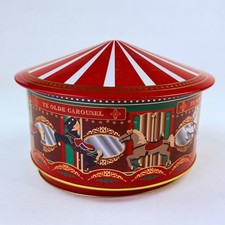 Ye Olde Carousel Musical Tin Red White Circus Tent Wind Up Music Box Vintage