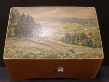 Vintage Swiss 2 Tune Thorens Wood Music Box Jewelry Casket Scenic Landscape A228