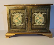 Vintage hand painted tole style wood gold jewelry music box