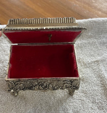 Vintage Metal Footed Trinket Music Box with Birds on Lid Velvet lined Japan