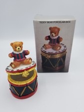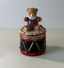Vintage Amanda Smith Teddy Bear on Toy Drum Porcelain Hinged Trinket Box