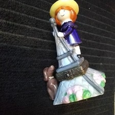 Vintage PHB Porcelain Hinged Trinket Box Madeline Eiffel Tower & Dog ~ Not A Toy