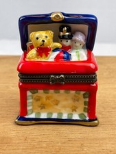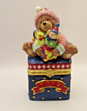 Traditions Porcelain Decorative Teddy Bear Toy Box Hinged Keepsake Vintage
