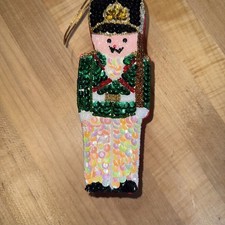 Vtg Porcelain Hinged Trinket Box Christmas Nutcracker Soldier & Glass Ornament