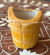 Vintage Mini Bucket Bisque Ceramic Bucket Toy Dollhouse Japan Yellow w String 1"