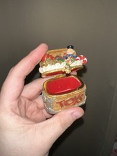 Vintage Christmas Toy Box Hinged Trinket Box Velvet Lined 2 1/2” X 2” X 1”