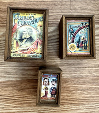 Set of 3 Vtg Wooden Nesting Boxes With Victorian Game/Toy Reproduction Art Lids
