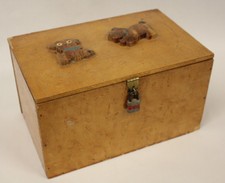 Vintage Golden 3 Puppies and ducklings Box Trunk Wood And Brass Ruane