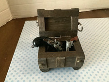 Vintage Wood Miniature Treasure Chest+ 2 Mini Guns