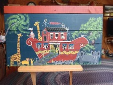 vtg handmade, handpainted wood 30x 13 x 18.5 toy box. 668