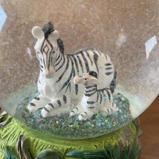Vintage Zebra w baby Foal Safari 6" Snow Globe / Music Box - Plays "BORN FREE