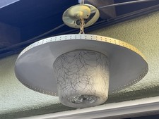 VTG Mid Century Modern Space Age UFO Saucer Crackle Glass Hanging Swag Lamp