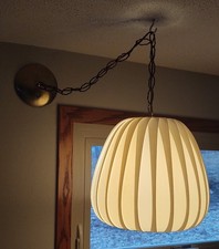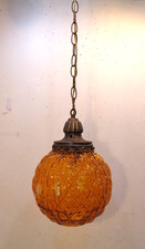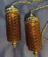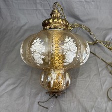 VTG Mid Century Modern Amber Glass Hanging Swag Lamp Retro 1960's