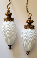 Pr. Vtg Mid Century Hollywood Regency White Teardrop Draped Glass Swag Lamps