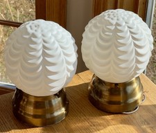 Vintage Mid-Century Modern Frosted Glass Light Globes with Brass - Set Of 2
