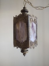 ✨Vintage Mid-century Modern Slag Glass Purple 💜 Gothic Swag Light Fixture