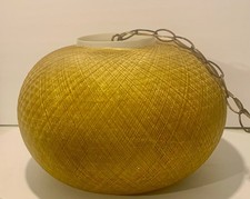 Vintage Mid-Century Modern Light Fixture Round Woven Fiberglass Exceptional 1960