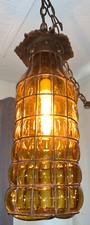 Vintage Mid Century Modern Amber Glass Hanging Swag Lamp MCM WORKING
