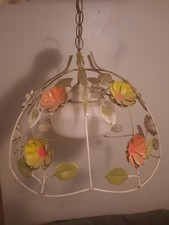 Vintage Mid Century Tole Metal Flower Daisy Chandelier Swag Light MCM