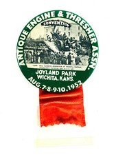 1952 Antique Engine Thresher Show Joyland Park Wichita Kansas KS pinback Ribbon