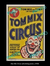 OLD 8x6 HISTORIC PHOTO OF COWBOY TOM MIX CIRCUS ADVERTISING POSTER c1930 1