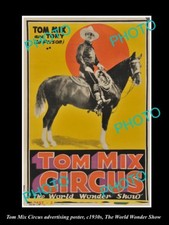 OLD LARGE HISTORIC PHOTO OF COWBOY TOM MIX CIRCUS ADVERTISING POSTER c1930 1
