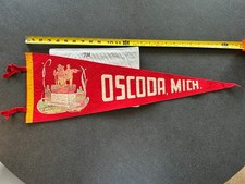 antique pennant vtg *SOFT FELT* OSCODA MICH MICHIGAN LUMBERMENS MONUMENT 26"