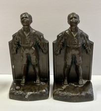 VTG Antique Boy Eagle Scout Figural Bookends Kronheim & Oldenbusch Bronze Tone
