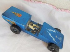 vintage hand made Boy Cub Scout PINE WOOD DERBY RACE CAR toy FLAMES LIGHTNING