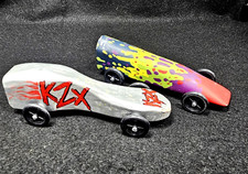 (2) Vintage Hand Made Wooden Derby Racers, 7" Toy Race Car