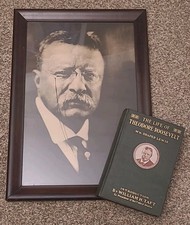Antique Theodore Roosevelt Framed Portrait c1900 + 1919 Biography w/ Taft Intro