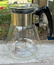 Vtg 50s 60s Mid Century Corning Heat Proof Glass Gold Starburst Coffee Carafe