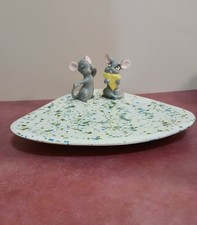 Mid-Century Ceramic Speckled Cheese Plate with Mice Figures