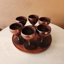 Teak Wood Goblet Set (6) with Teak Wood Tray- VTG MCM