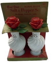 Plastic Rose Bud Vase Salt & Pepper Shaker Set Mid-Century Modern Vintage