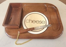 Tray Wood SAYS CHEESE on Tile, Attached Knife, Taiwan MCM