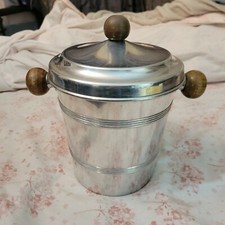 Mid Century Modern MMM SA Brand Hammered Aluminum Ice Bucket Bakelite Handles 17