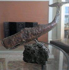 VTG Whale Sculpture Metal Crafts Artisan 2 Hawaii On Lava Rock Mid Century Art