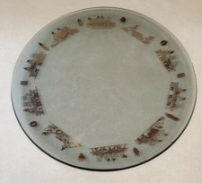 VTG Mid-Century Fred Usinger Inc Milwaukee Collectible Smokey Glass Platter Gold